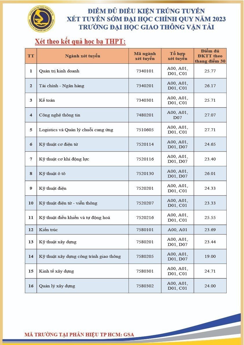 Trường Đại học Giao thông vận tải công bố điểm trúng tuyển đại học hệ chính quy năm 2023