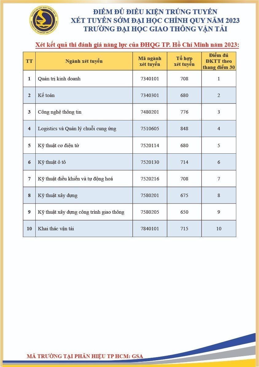 Ngành Quản trị kinh doanh - Khoa Vận tải Kinh tế - Trường Đại học Giao thông Vận tải thông báo xét tuyển đại học chính quy năm 2023 theo kết quả học bạ THPT và xét tuyển kết hợp